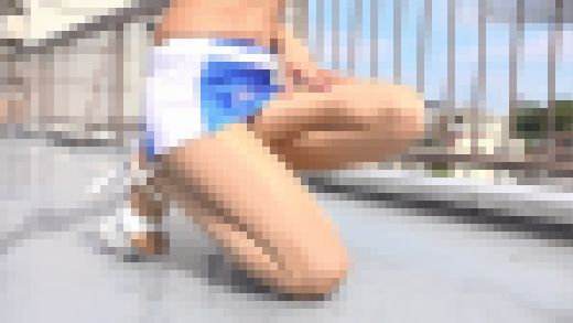 まずはコスチュームのスカートだけを脱いで、オーバーショーツ(いわゆる見せパン)姿に。