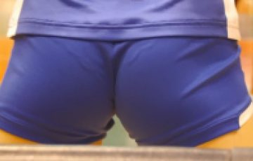 写真撮影後に交渉して陸上ユニフォームのまま紐と指でのマンスジオナニーを収録。ブルマに表濡れ染みができておりラストはブルマ染みチェック。