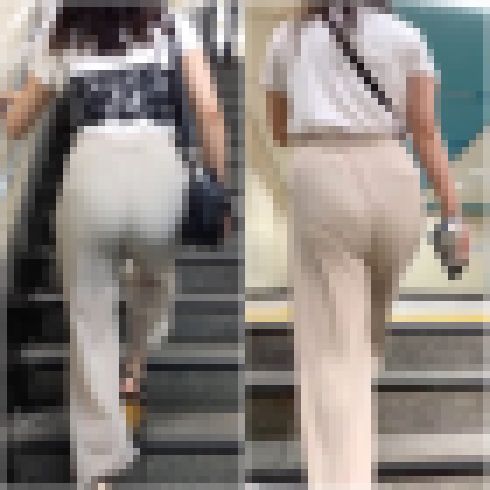 尻肉とパンティーラインを存分に映し出す極薄生地のパンツ。