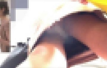 6人目:電車待ちのミニデニムスカートのギャルを後ろから撮影、ムチムチの黒のパンチラをGET。