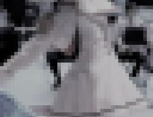 これまでとは雰囲気も違った、街頭、というおニュー環境の作。シャッターの降りたビルや老若男女のやじ馬たちを背景にしての、さながら出前チアー、といった趣。