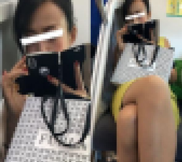 ボディラインがくっきり…スカート短めワンピで攻めるスレンダーな人妻さん…スカートからむき出しのパンストあんよが悩ましい感じ…。男の視線を挑発するかのように…パンストあんよをくんじゃって…。そんなに挑発するなら…その挑発に乗っちゃいましょう!!上から…正面から…人妻さんの挑発的なお姿をじっくり観察して差し上げました!!最後に…座席から立つときに…組んでいたパンストあんよを解くときに現れた…魅惑の▼ぞーんも…しっかり狩っちゃいました!!よろしかったら…のぞいていってください。