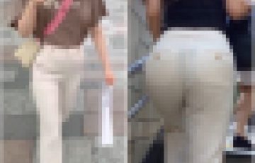 お尻の割れ目の始まりは透けて写ってます。