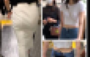 超ミニスカートから覗くすらりとのびた美脚、その奥には生の白パンツ