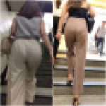 2人目・・・石段で彼氏との会話に夢中になっている可愛いお姉さんが、黒のパンティーを見せています。