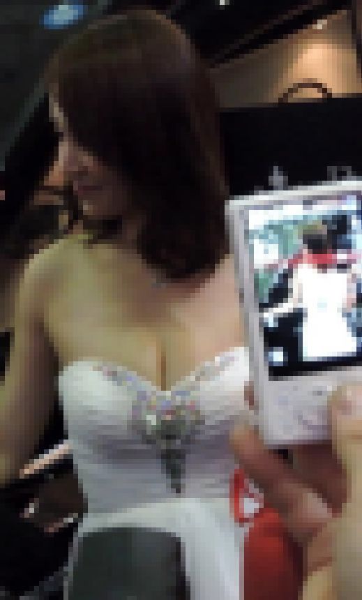 谷間を強調したおっぱいコンパニオンですw