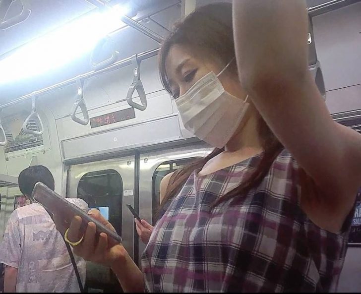 帰宅中に腋が見えるお姉さんがいたので撮りました。