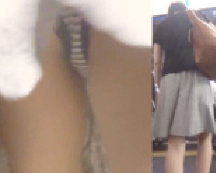 彼女はグレーのスカートを履いていました。このスカートはそれほどミニ丈というわけではありませんでしたが、裾がひらひらな感じだったのでカメラをスカートの中へ差し込みやすそうです。そこでカメラを準備して撮影を開始しました。彼女を追いかけながらチャンスを伺います。