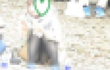 2人目・・・縁石に座り、食事に夢中になっている綺麗なお姉さんが、パンスト越しの黒のパンティ-を見せています。
