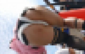 公衆の面前で肌も露わなミニスカ-トの中を覗き見るロ-アングルからのパンチラ。