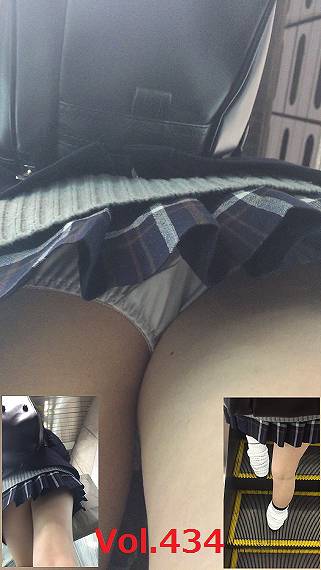 制服スカートに白色パンティが鮮明に映っています。